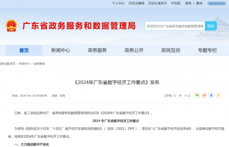 廣東省工業和信息化廳 廣東省政務服務和數據管理局近日印發《2024年廣東省數字經濟工作要點》。 文件中提到,大力推動產業數字化,具體包括推動制造業、農業、貿易、交通、金融... [閱讀全文]