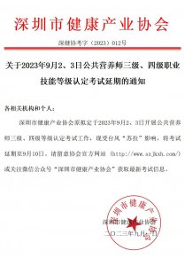 關于2023年9月2、3日公共營養師三級、四級職業技能等級認定考試延期的通知