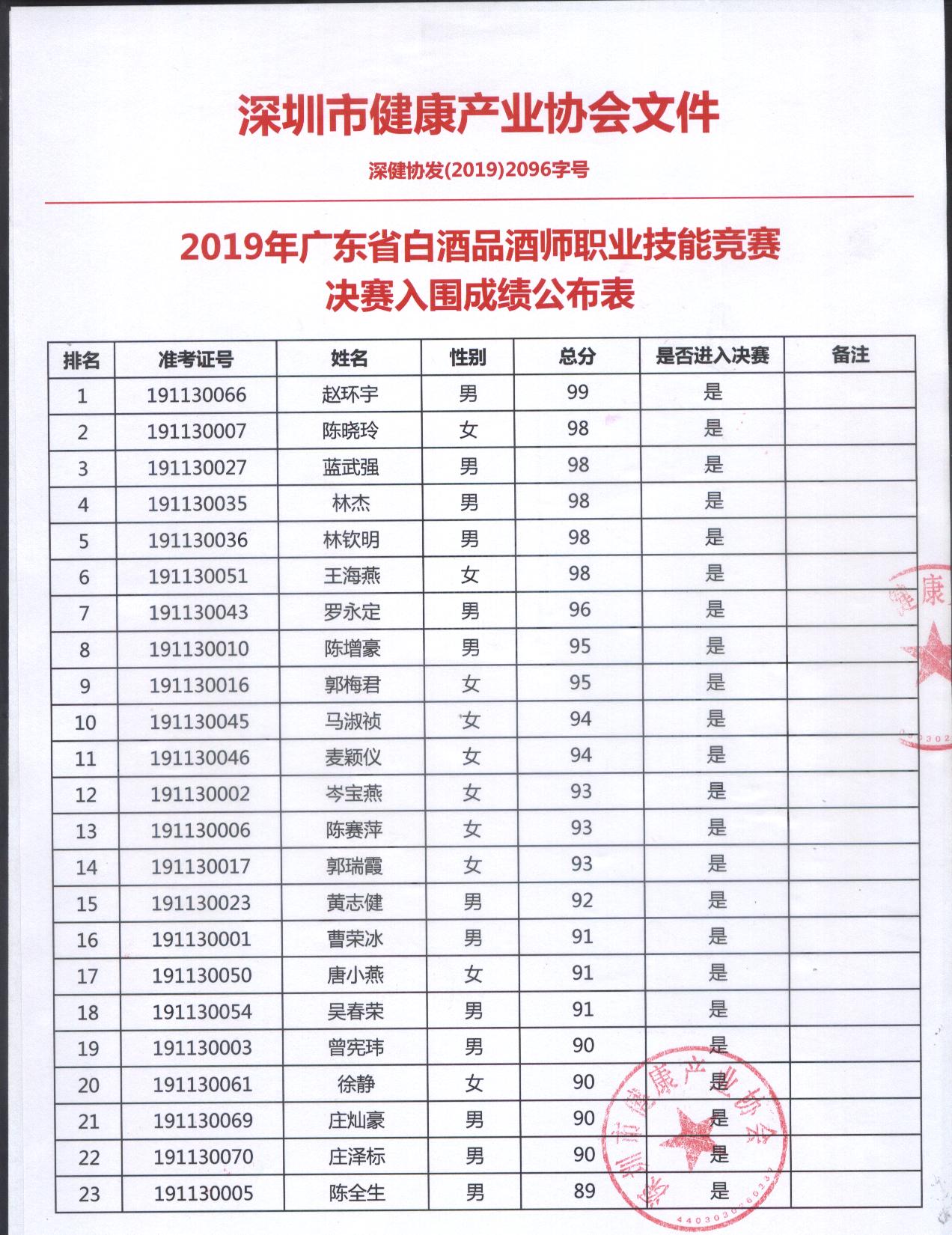 2019年廣東省白酒品酒師大賽決賽入圍公示