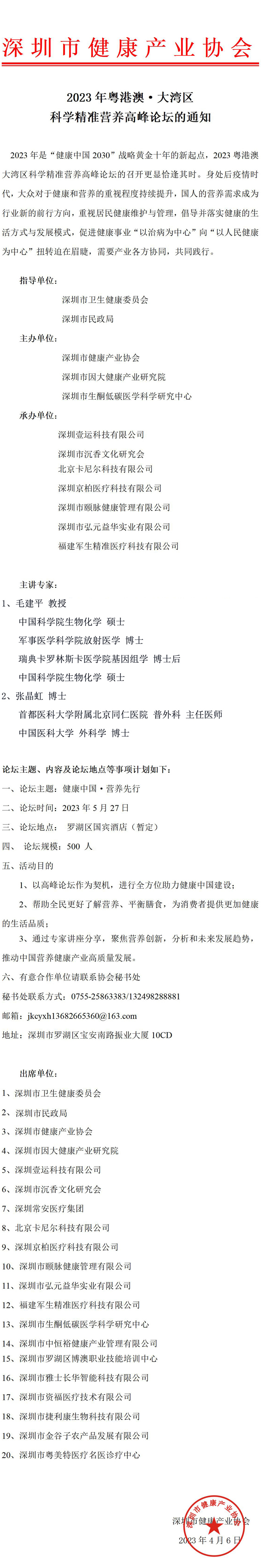 『2023 粵港澳·大灣區科學精準營養高峰論壇』的通知