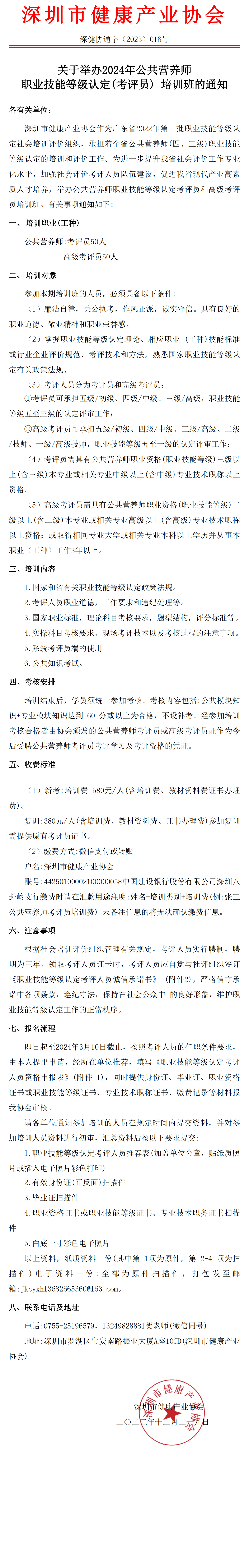 關于舉辦2024年公共營養師職業技能等級認定(考評員) 培訓班的通知
