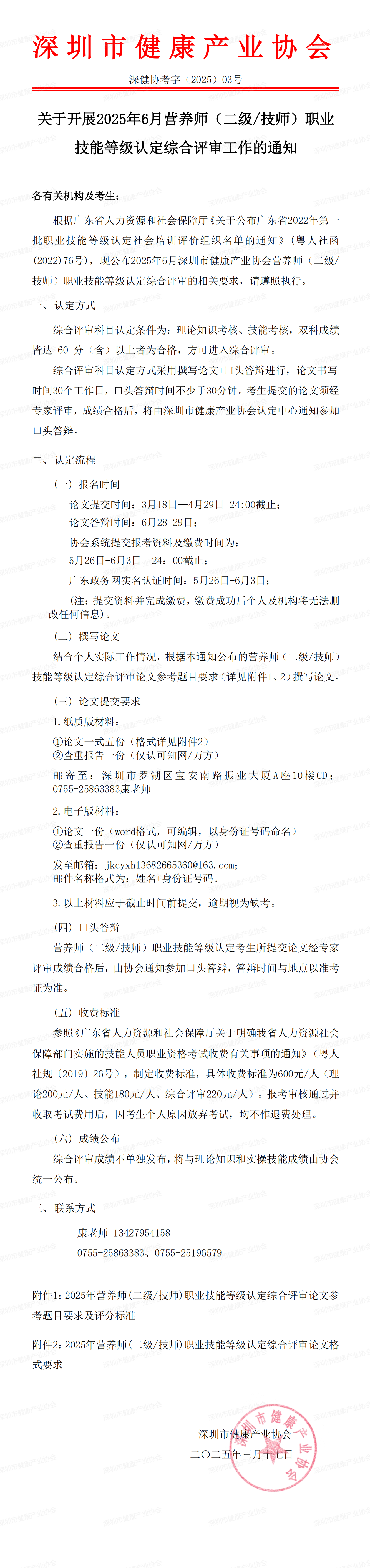 關于開展2025年6月(二級/技師)營養師綜合評審認定工作的通知
