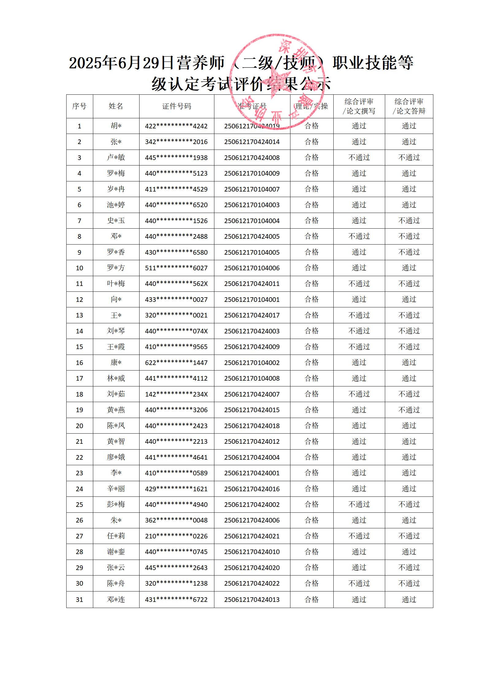 營養師(二級/技師)職業技能等級認定考試 評價結果公示
