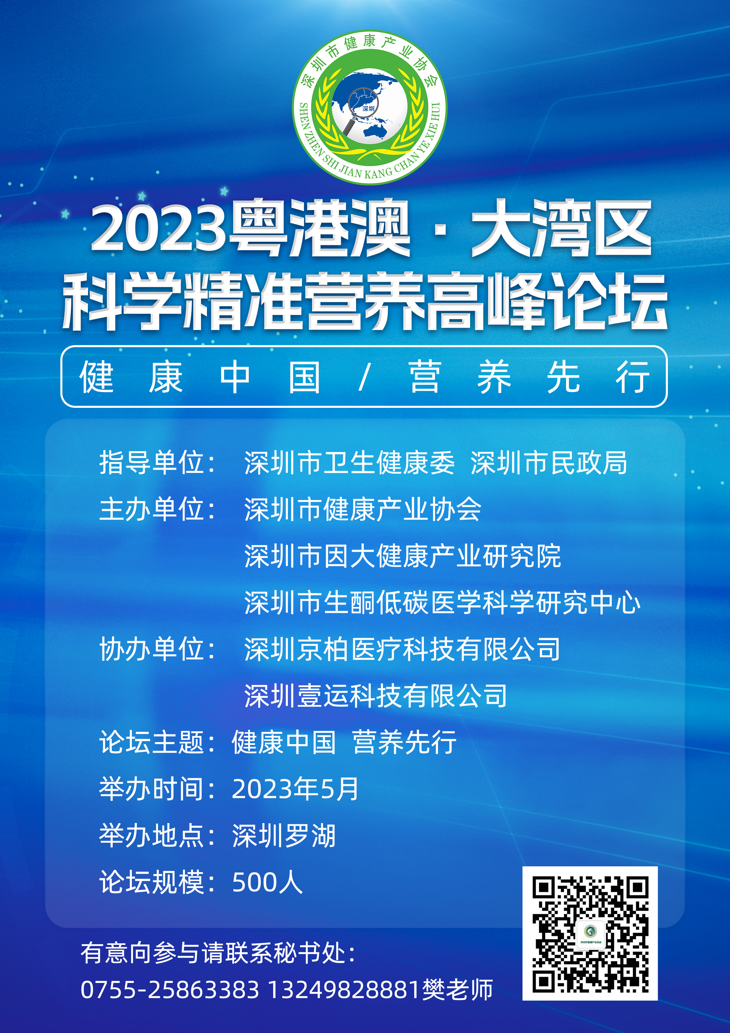 2023粵港澳大灣區(qū) 科學(xué)精準(zhǔn)營(yíng)養(yǎng)高峰論壇 將在5月份舉行