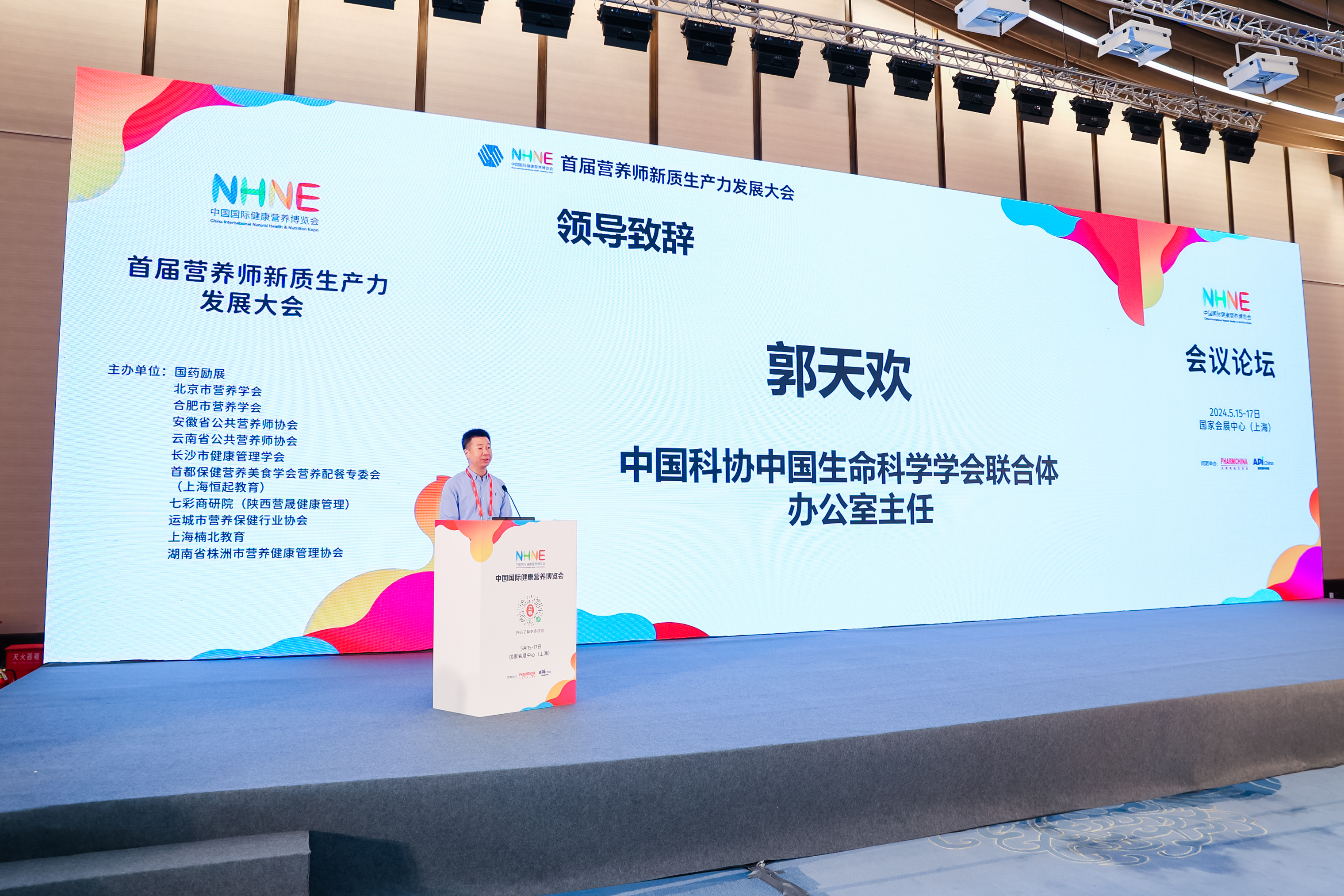大會開幕式上,中國生命科學會聯合體辦公室主任郭天歡發表致辭,對全國營養師在推動健康中國建設中的重要作用給予了充分肯定,并對未來營養師行業的發展提出了殷切期望。