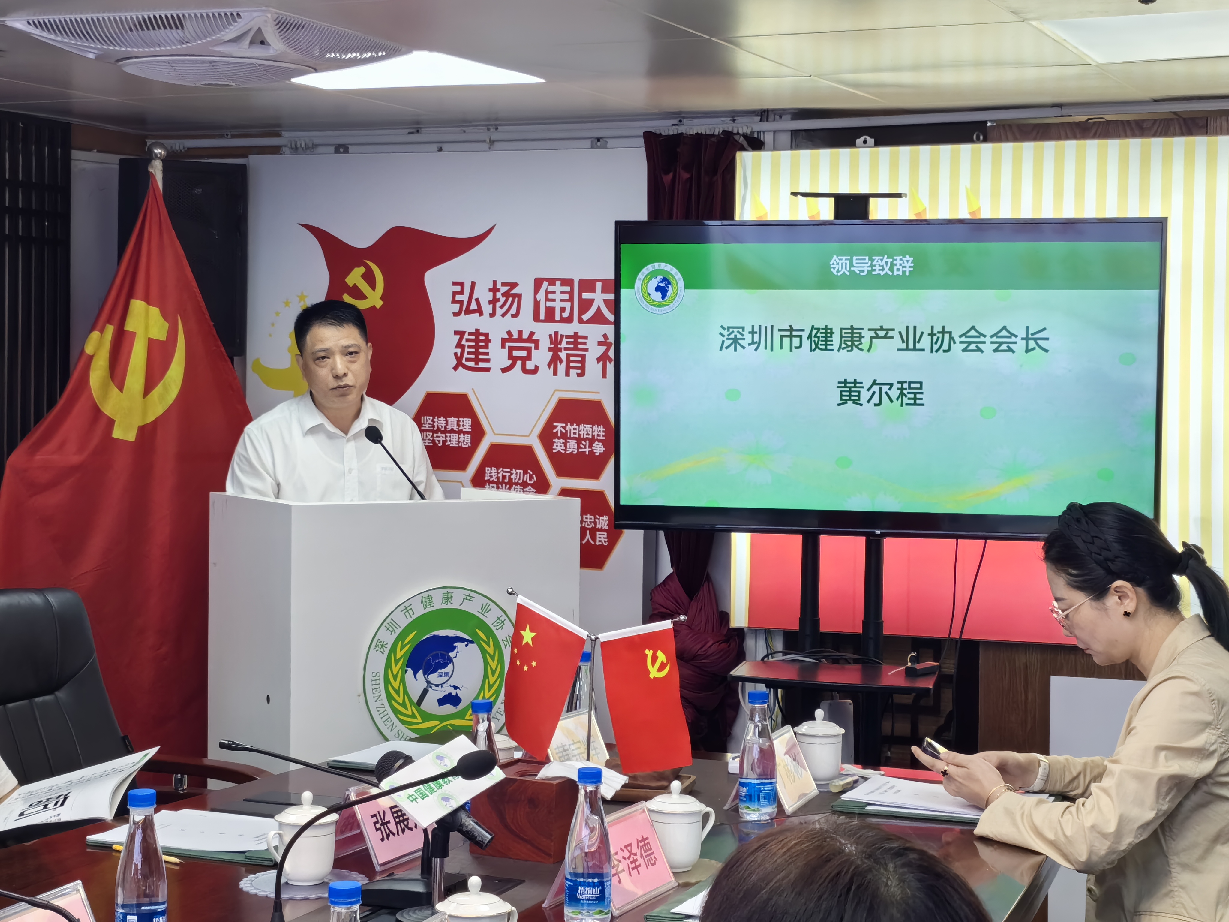 深圳市健康產業協會會長黃爾程發表了重要講話。他首先對與會的各位理事和嘉賓表示歡迎和感謝,并對過去一年協會在促進健康產業發展方面取得的成果進行了簡要回顧。黃爾程會長指出,在所有理事和會員單位的共同努力下,協會在加強行業自律、推動科技創新、優化產業結構、提升服務水平等方面取得了顯著成績,為增進人民群眾的健康福祉作出了積極貢獻。