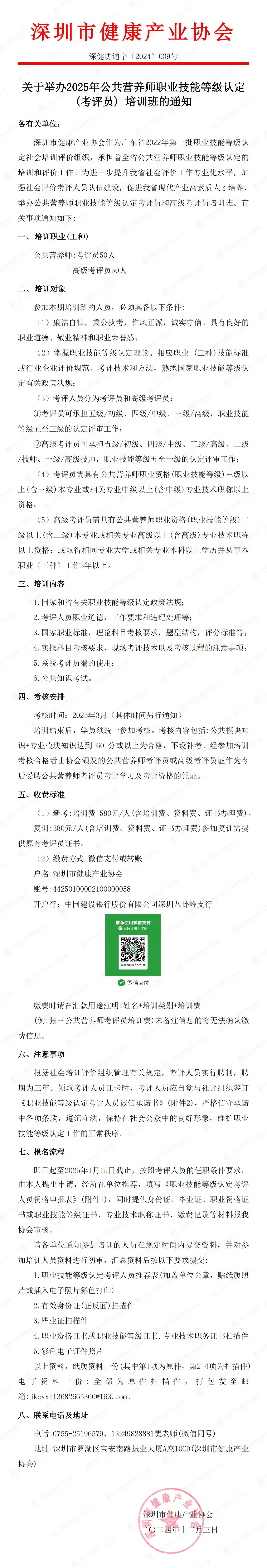 關于舉辦2025年公共營養師(考評員) 培訓班的通知